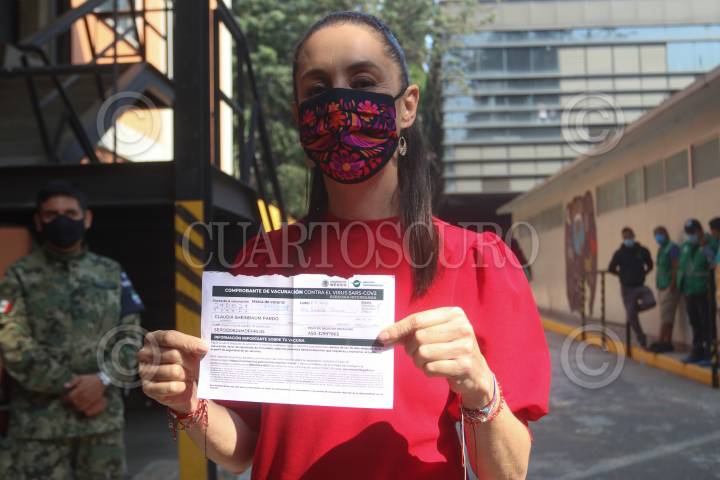 Claudia Sheinbaum, jefa de Gobierno, acudió a la aplicación de la primera dosis de la vacuna P-fizer contra Covid-19 en la Escuela Nacional Preparatoria N°5 "José Vasconcelos"