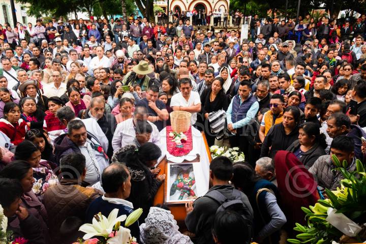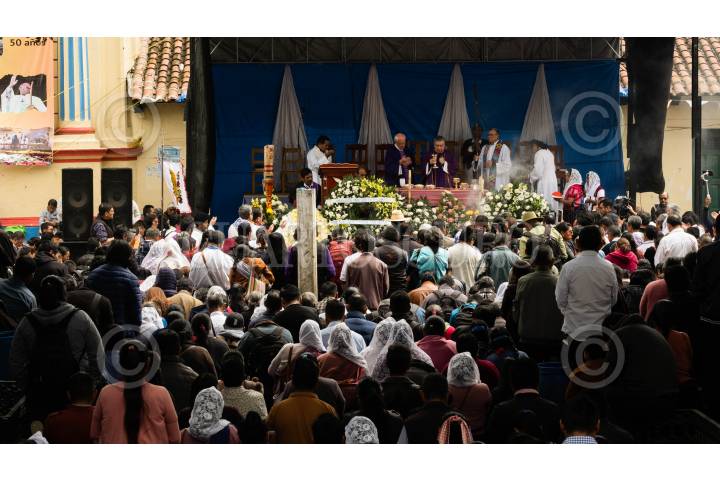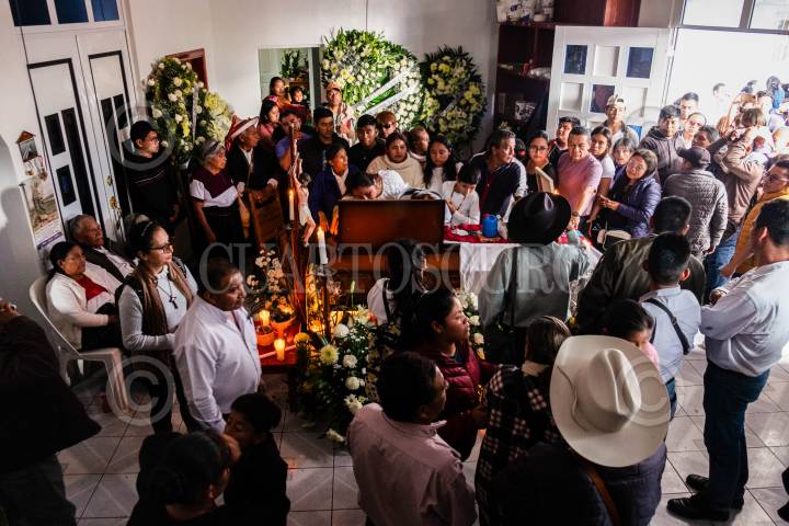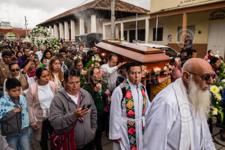 SAN ANDRES LARRAINZAR, CHIAPAS, 21OCTUBRE2024.- Familiares, integrantes de la iglesia católica y pobladores de las diferentes regiones del estado se dieron cita en el parque central de la cabecera municipal para oficiar una misa de cuerpo presente en honor al Padre Marcelo quien fue asesinado por impactos de bala en el barrio Cuxtitali de San Cristóbal de las Casas. FOTO: ISABEL MATEOS /CUARTOSCURO.COM