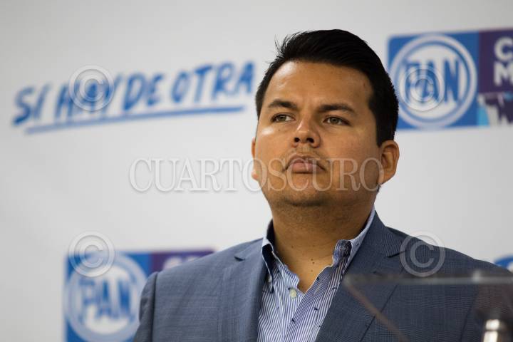 Diego Garrido, diputado local panistas, durante la conferencia en la sede local de su partido, en la que abordaron temas de salud y seguridad en la capital.