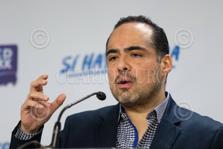 CIUDAD DE MÉXICO, 01JUNIO2024.- Juan Dueñas, representante del Partido Acción Nacional (PAN) ante el Consejo General del Instituto Electora de la Ciudad de México (IECM), encabezó la conferencia de prensa para denunciar la detención arbitraria, el día de ayer, de Edgar Ramírez Rodríguez, jefe de la Unidad de la Vía Pública de la alcaldía Álvaro Obregón, por parte de la Policía de Investigación Capitalina. FOTO: GALO CAÑAS/CUARTOSCURO.COM