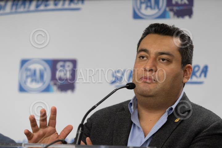 Raúl Torres, diputado migrante panistas, durante la conferencia en la sede local de su partido, en la que abordaron temas de salud y seguridad en la capital.