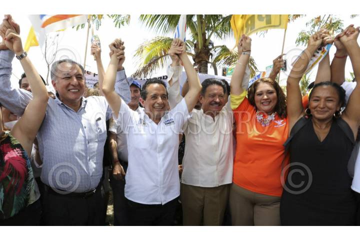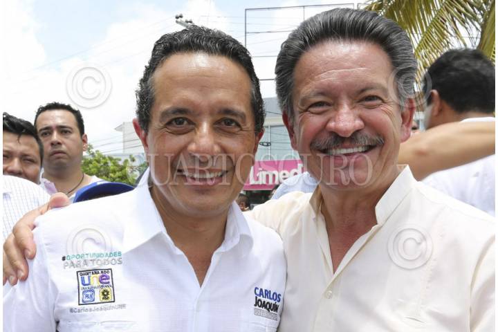 CANCÚN,QUINTANA ROO,19MAYO2016.- Carlos Joaquín, candidato de la coalición PAN-PRD por la gubernatura del estado, estuvo acompañado de Carlos Navarrete en el evento de campaña, en el cual llamaron al voto útil. FOTO: ELIZABETH RUÍZ /CUARTOSCURO.COM