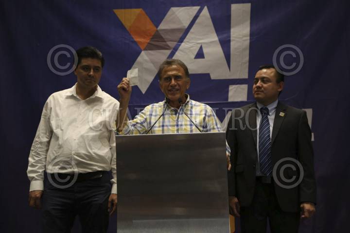 BOCA DEL RÍO, VERACRUZ, 05JUNIO16.- Miguel Ángel Yunes Linares, candidato por la coalición PAN-PRD "Unidos para rescatar Veracruz", se proclamó vencedor de la contienda electoral por 5 puntos arriba de su primo hermano y candidato por el PRI, Héctor Yunes Landa. FOTO: ILSE HUESCA /CURTOSCURO.COM