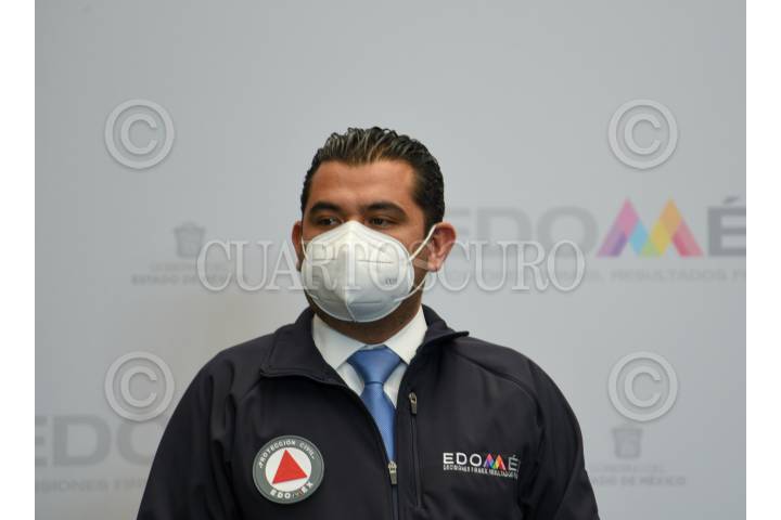 Samuel Gutiérrez Macías, Coordinador General de Protección Civil durante la conferencia de prensa en donde se informó sobre las acciones preventivas ante el inicio de la temprana de lluvias.