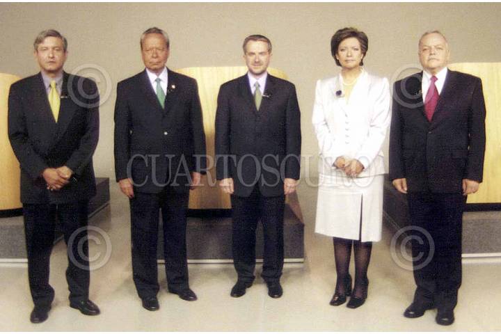 Andres Manuel Lopez Obrador del PRD , Jesus Silva Herzog del PRI, Santiago Creel del PAN , Teresa Vale del PDS y Alejandro Ordorica del PARM antes del inicio del debate que sustivieron esta noche los candidatos a gobierno del D.F.