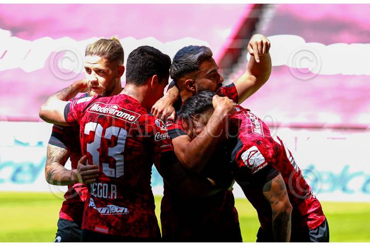 El defensa Raul López, el delantero Pedro Canelo y el medio Diego Rigonato celebran la segunda anotación ante la escuadra de Mazatlán en el estadio Nemesio Diez.