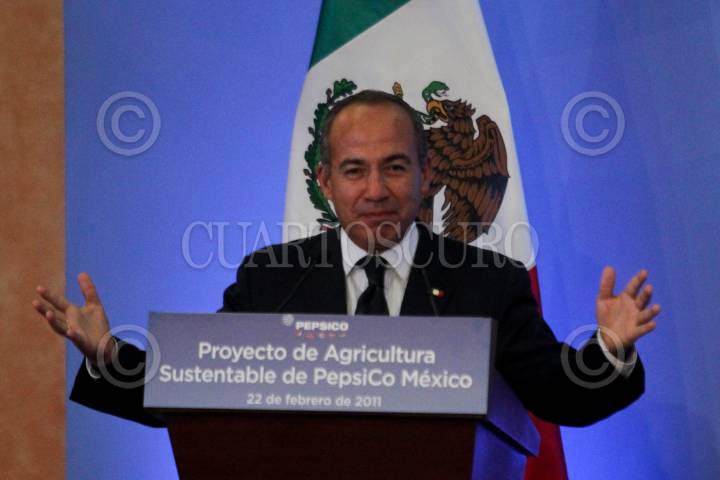 MÉXICO, D.F., 22FEBRERO2011.- Felipe Calderón, Presidente de México, durante la firma de convenios entre PepsiCo y el Banco Internacional de Desarrollo. FOTO: ENRIQUE ORDÓÑEZ/CUARTOSCURO.COM