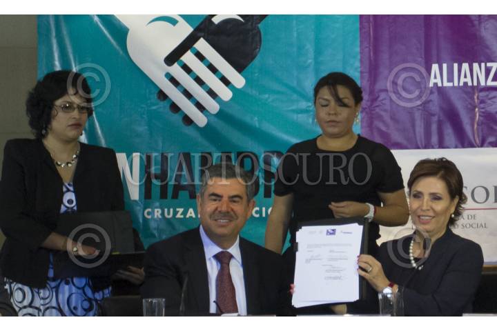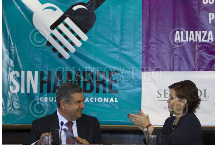 MÉXICO, D.F., 08ABRIL2013.- Rosario Robles Berlanga, titular de la Secretaria de Desarrollo Social durante la firma de convenio de colaboración para contribuir a la Cruzada Nacional Contra el Hambre con Pedro Padierna, Presidente de PepsiCo México. FOTO: GUILLERMO PEREA /CUARTOSCURO.COM