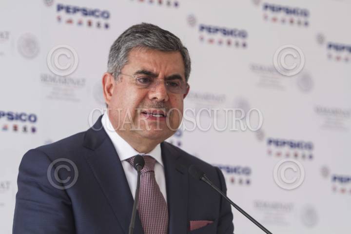 MÉXICO, D.F. 23MARZO2015.- Pedro Padierna, presidente de Pepsico y Juan José Guerra Abud secretario de medio ambiente durante la presentación de las tres medidas para seguir con las acciones de sustentabilidad al itnerior de la compañía. La primera de ellas consiste en la ampliación de flota híbrida, la segunda es adoptar la tecnología más avanzada en plantas de producción y la tercera es que el 75 por ciento de toda la operación sea abastecida por energía eólica. FOTO: ISABEL MATEOS /CUARTOSCURO.COM