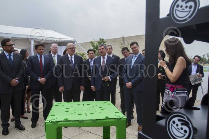MÉXICO, D.F., 24JULIO2014.- Pedro Padierna Bartning, presidente de PepsiCo México, y Miguel Ángel Mancera, jefe de Gobierno del Distrito Federal, inauguraron la planta de tratamiento de aguas residuales de al empresa Pepsico, ubicada en la colonia Industrial Vallejo. Dicha planta es capaz de purificar el agua sucia hasta volverla de consumo humano. FOTO: ISAAC ESQUIVEL /CUARTOSCURO.COM