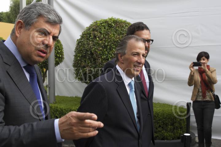 CIUDAD DE MÉXICO, 27JUNIO2016.- Pedro Padierna Bartning, presidente de PepsiCo México; José Antonio Meade, secretario de Desarrollo Social, y Francisco Merino, vicepresidente jurídico y de asuntos de gobierno de PepsiCo, durante la firma de declaración conjunta entre la Sedesol y PepsiCo "Por un México Incluyente". FOTO: MOISÉS PABLO /CUARTOSCURO.COM