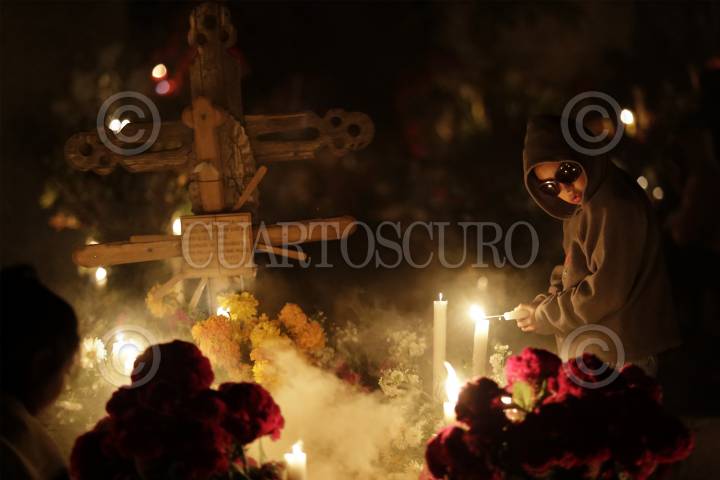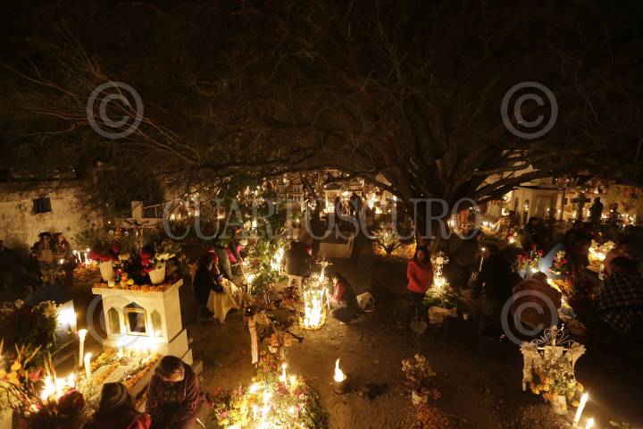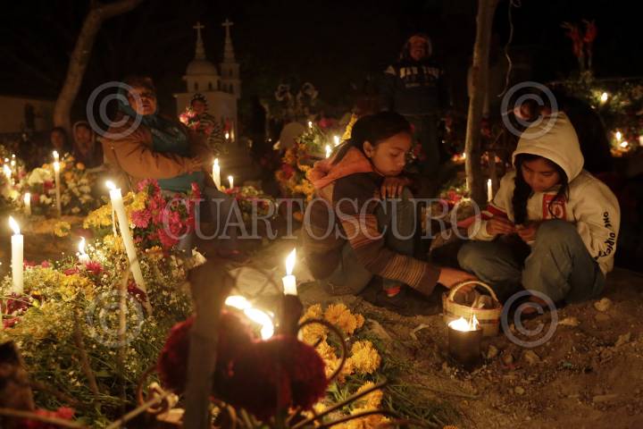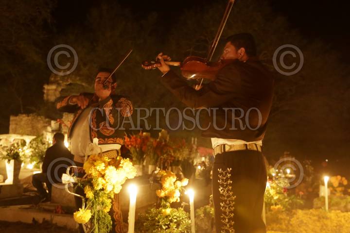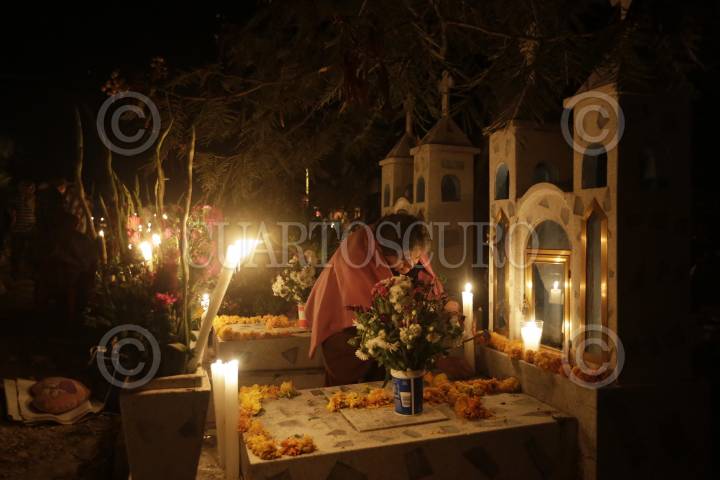 XOCHITLÁN TODOS SANTOS, PUEBLA, 02NOVIEMBRE2017.- Como cada año, cientos de pobladores del municipio de Xochitlán Todos Santos, Puebla; acuden al panteón para acompañar a sus difuntos durante su visita al mundo de los vivos con música, comida y bebida hasta el amanecer. FOTO: HILDA RÍOS /CUARTOSCURO.COM