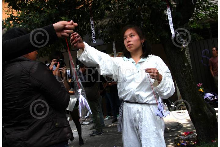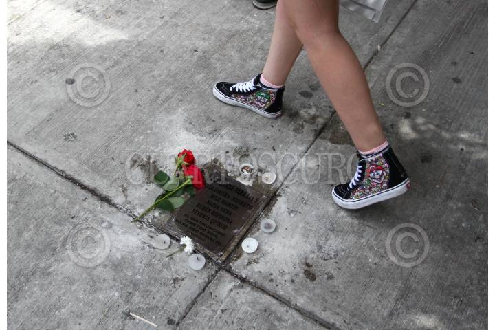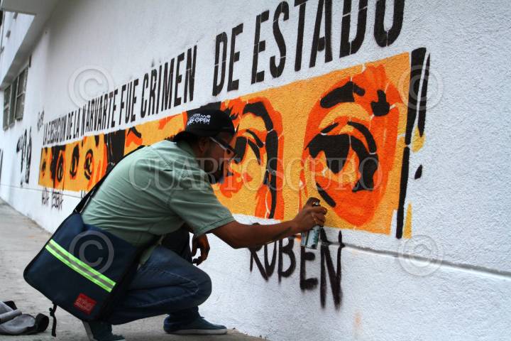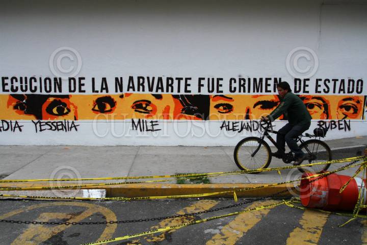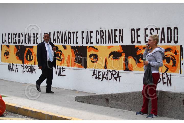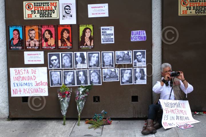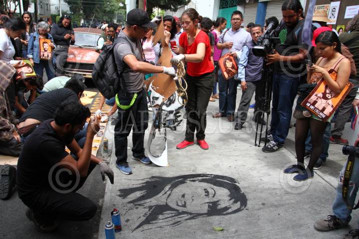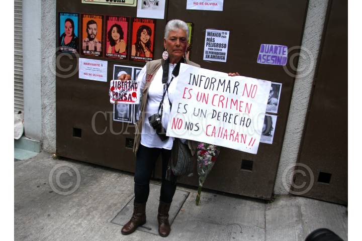 CIUDAD DE MÉXICO, 31JULIO2016.- Organizaciones de periodistas y de Derechos Humanos realizaron una manifestación frente a la vivienda 1909 de Luz Saviñon, en la colonia Narvarte, al cumplirse un año del multihomicidio en el cual fueron asesinados Rubén Espinoza, fotoperiodista colaborador de Cuartoscuro y la revista Proceso; Nadia Vera, activista de derechos humanos; Yesenia Quiroz; Mile Martí; Alejandra Negrete. FOTO: ADOLFO VLADIMIR /CUARTOSCURO