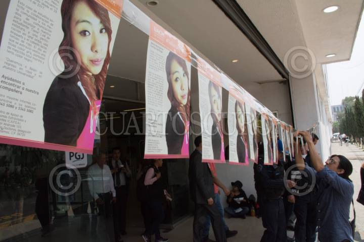 CIUDAD DE MÉXICO, 24MAYO2017.- Activistas se protestaron afuera de las instalaciones de la la Procuraduria General de Justicia de la CDMX, para exigir que el proceso de búsqueda de Belén, estudiante de la Universidad Autónoma de la Ciudad de México (UACM) desaparecida el pasado 29 de abril, se agilice. FOTO: MARIO JASSO /CUARTOSCURO.COM