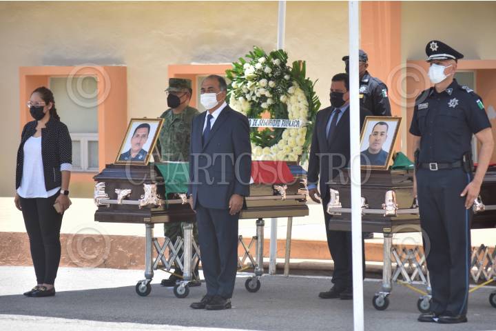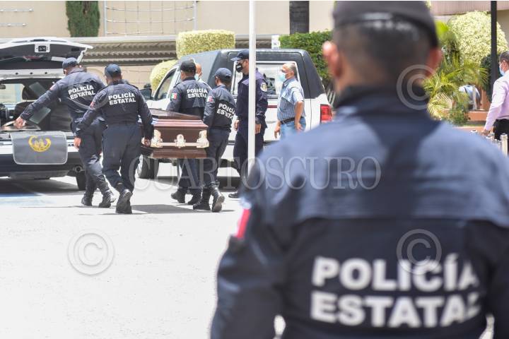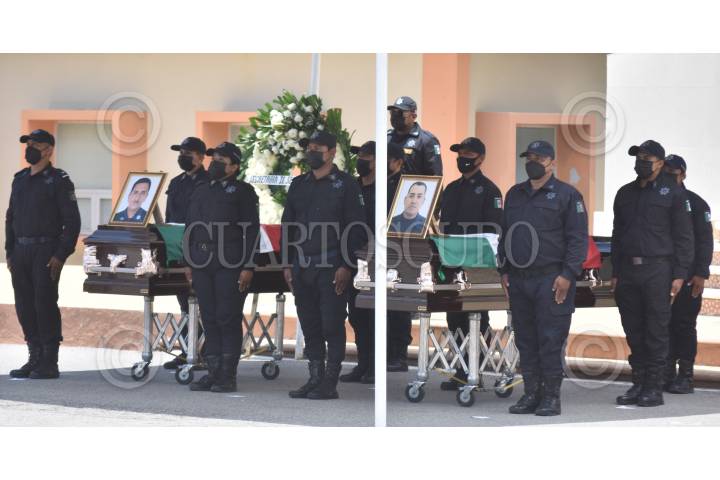 Autoridades del gobierno de Guerrero realizaron un homenaje de cuerpo presente a los policías estatales. Lamberto Guzmán López y Marco Antonio Aldabera Flores, quienes ayer fueron asesinados en una emboscada en el poblado de San Alejo de Ixtapan de la Sal.
