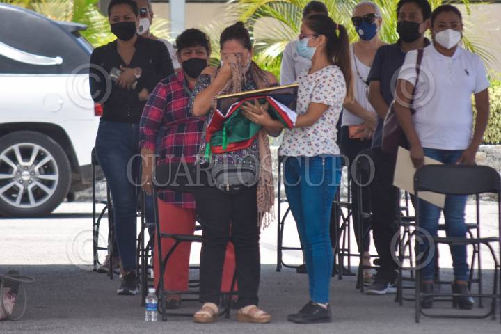 Familiares de los policías estatales. Lamberto Guzmán López y Marco Antonio Aldabera Flores estuvieron presentes en el homenaje de cuerpo presente que les realizaron tras morir el día de ayer durante un ataque armado en Ixtapan de la Sal.