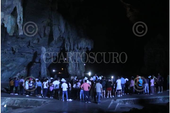 Turistas ingresan a la Gruta de Cacahuamilpa, ubicadas al norte del estado de Guerrero.