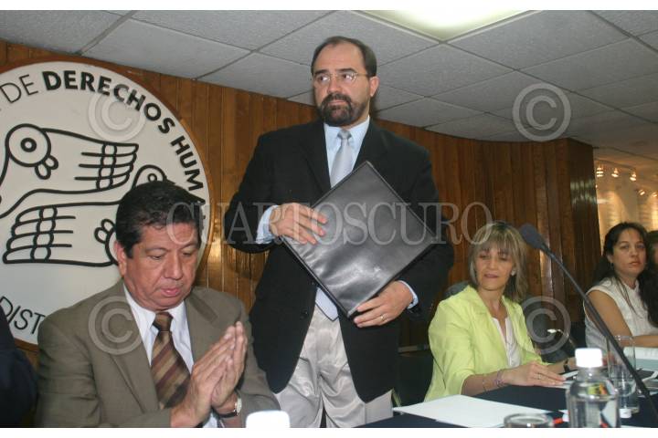 MEXICO, D.F. 15ABRIL2005.- José Luis Pérez Canchola, director general del Instituto de Formación Profesional de la PGJDF y Emilio Avarez Icaza, presidente de la Comisión de Derechos Humanos del D. F., durante la ceremonia de bienvenida a los cadetes del Instituto de Formación profesional de la PGJDF. FOTO: Nelly Salas/CUARTOSCURO.COM