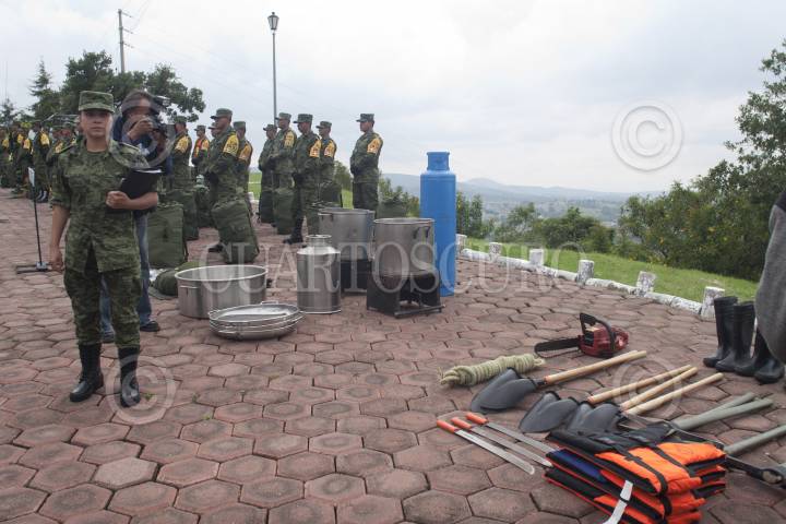 PUEBLA, PUEBLA, 19JUNIO2012.- La 6ta y 7ma Regimiento Blindada de Reconocimiento de la XXV Zona Militar del Ejército Mexicano, presentó ante medios de comunicación los ejercicios de evacuaciòn, asistencia y protección a la poblaciòn civil ante una eventual erupciòn del volcán Popocatépetl en el maerco del PLAN DNIII-E. Las acciones pretenden evacuar en menos cinco horas con apoyo de autoridades civiles y cerca de 500 elementos las comunidades de Santiago Xalitzintla, San Pedro Benito Juárez y San Nicolás de los Ranchos. Asi lo aseveró Marco Antonio Barrón Avalos, comandante de la XXV Zona Militar. FOTO: FRANCISCO RODRÍGUEZ /CUARTOSCURO.COM
