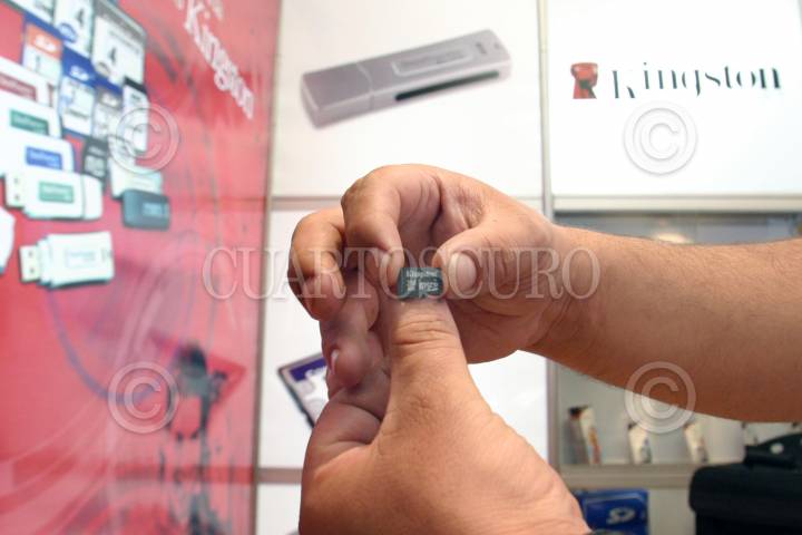 MEXICO, D.F., 18MAYO006.- Durante la PMA Latinoamericano, un encuentro de varias compañias dedicadas que ofrecen productos y servicios de fotografía, se pueden apreciar las novedades en memorias portatiles como esta de Kingston, que es del tamaño de una uña con capacidad de 1 Giga. FOTO: Moisés Pablo/CUARTOSCURO:COM