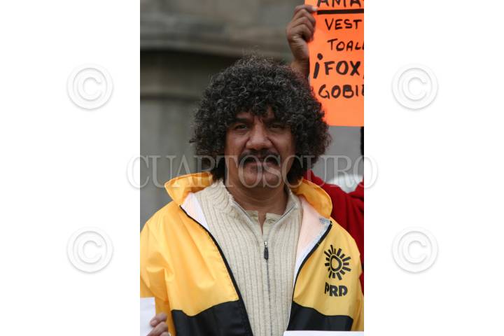 MEXICO, D.F., 05JUNIO2006.- Integrantes del PRD del Distrito Federal, protestaron afuera del Palacio Nacional en contra de la familia de la priemra dama Marta Sahagún y sus hijos y el candidato panista a la presidencia Felipe Calderón. En la imagen Luis Bravo "Tiviri", encargado de la secretaría de organizaciones sociales del PRD-DF. FOTO: Moisés Pablo/CUARTOSCURO.COM