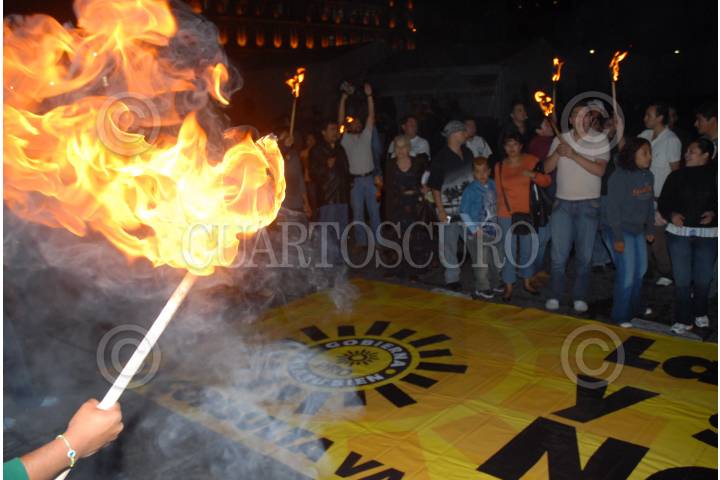 MÉXICO, D.F., 25JULIO2008.- Militantes del PRD-DF prendieron decenas de veladoras, bajo la lluvia, como parte de las protestas contra la iniciativa del ejecutivo para la Reforma Energética en la plancha de el Zócalo de esta ciudad. FOTO: FELIPE CASTELLANOS/CUARTOSCURO.COM