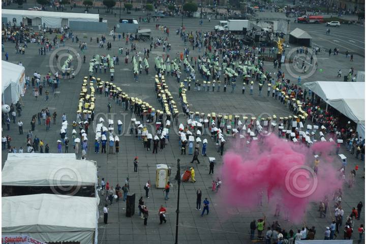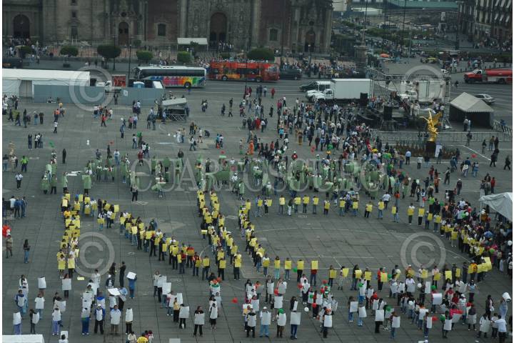 MÉXICO, D.F., 26JULIO2008.- Militantes del PRD-DF realizaron una movilización ciudadana que denominaron "mosaico humano" que consistía en formar una leyenda con cartulinas, que se distinguieran a lo lejos, todo esto como parte de las protestas contra la iniciativa del ejecutivo para la Reforma Energética en la plancha de el Zócalo de esta ciudad. FOTO: FELIPE CASTELLANOS/CUARTOSCURO.COM