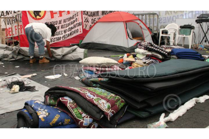 MÈXICO, D.F. 13SEPTIEMBRE2006.- Los habitantes de los campamentos ubicados en la plancha del Zòcalo comienzan a empacar sus pertenencias ante la cercanìa de la celebraciòn del grito de independencia. FOTO: PAOLA HIDALGO/CUARTOSCURO.COM