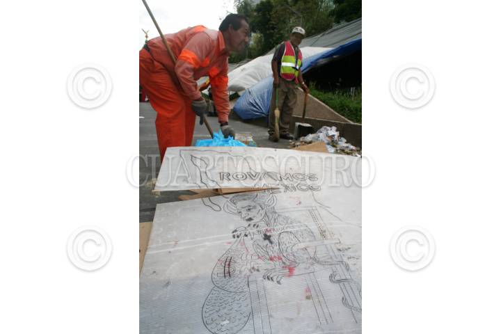 MÈXICO, D.F. 13SEPTIEMBRE2006.- Mienbros de el departamento de limpia del D.F. se encargan de retirar y recolectar carteles y letreros de los campamentos ubicados en paseo de la reforma. FOTO: PAOLA HIDALGO/CUARTOSCURO.COM
