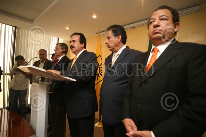 MÉXICO, D.F., 06JULIO2010.- Luis Walton, Presidente del Partido Convergencia junto a Antonio Mejia Haro Candidato a la Gubernatura en el estado de Zacatecas; Jesus Ortega, Presidente Nacional del PRD y Manuel Camacho Solis, Coordinador del Dialogo para la Reconstrucción de México, en conferencia de prensa en las Instalaciones de la Sede Nacional del PRD. FOTO: CUARTOSCURO.COM