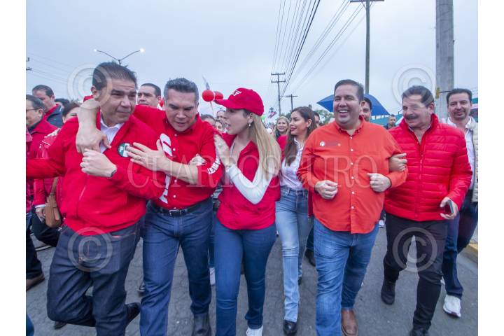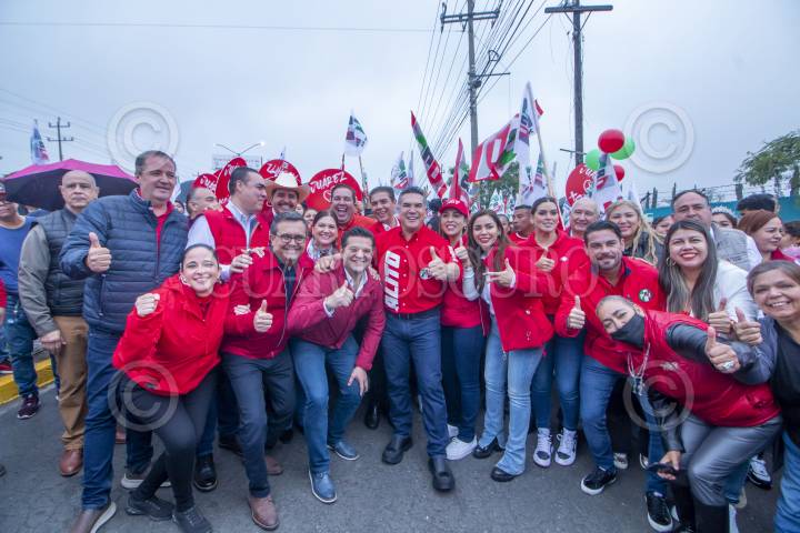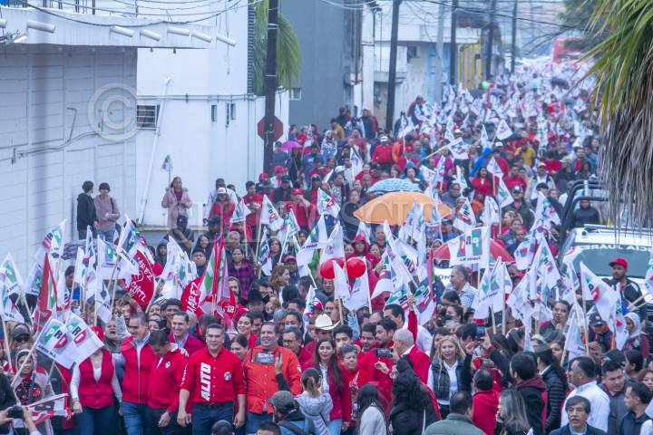 BENITO JUÁREZ, NUEVO LEÓN, 25NOVIEMBRE2023.- Encabezado por el presidente nacional del PRI, Alejandro Moreno Cárdenas y el dirigente del comité directivo estatal del PRI, José Luis Garza Ochoa, más de 15 mil militantes y simpatizantes recorrieron las calles del municipio de Benito Juárez, Nuevo León, en la Marcha de la Unidad Revolucionaria. En la marcha de más de 1.5 kilómetros de recorrido participaron tamién diputados federales, diputados locales, alcaldes y dirigentes de sectores, organizaciones y comités municipales. FOTO: GABRIELA PÉREZ MONTIEL / CUARTOSCURO.COM