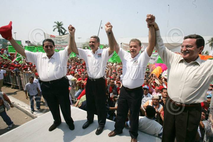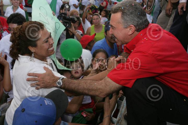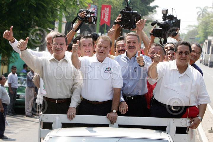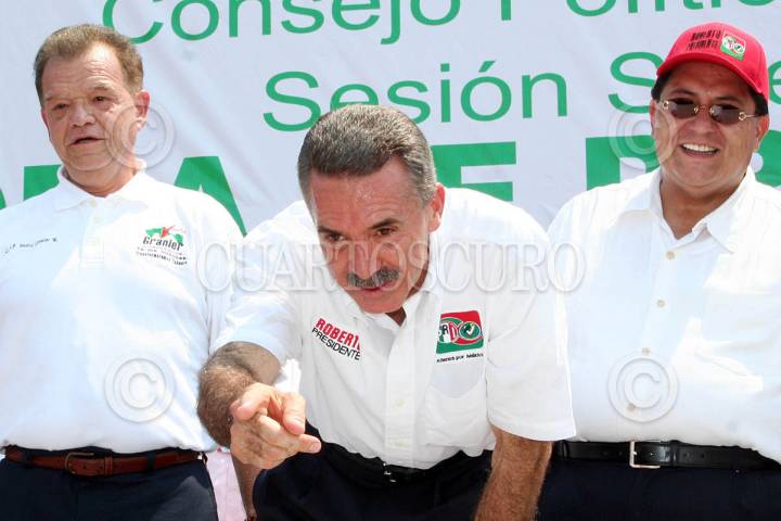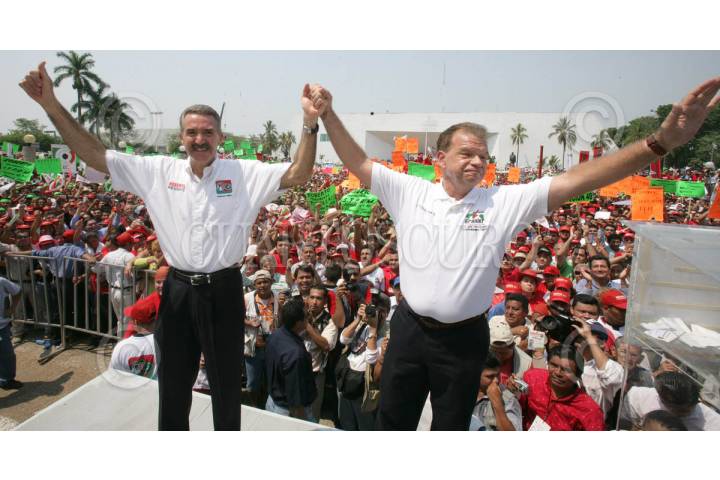 VILLAHERMOSA, TABASCO 30ABRIL2006.- El candidato de la Alianza por México PRI-PVEM. Roberto Madrazo de gira por esa entidad, asistió a la toma de protesta de Andrés Granier como candidato por esa coalicion al gobierno del estado. acompañados también por el Presidente nacional del PRI. Mariano Palacios Alcoser FOTO: Marco Polo Guzmán/CUARTOSCURO.COM
