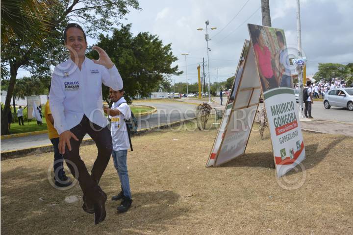 CANCÚN, QUINTANA ROO, 19MAYO2016.- La disputa por la gubernatura de Quintana Roo se ha intensificado en las calles de Cancún con el candidato de la coalición PRI-Verde, Mauricio Gongora y la coalición PAN-PRD con Carlos Joaquín. FOTO: ELIZABETH RUIZ /CUARTOSCURO.COM
