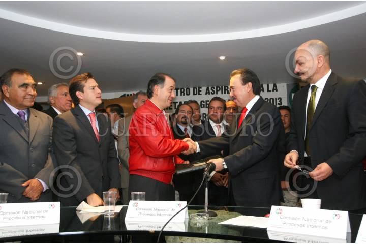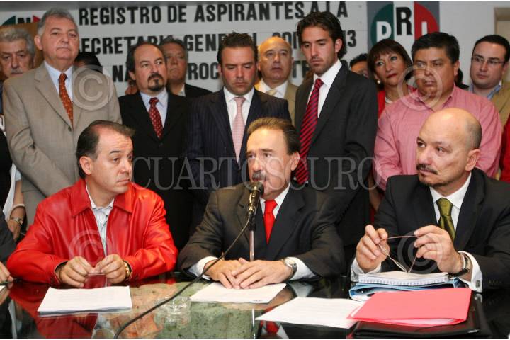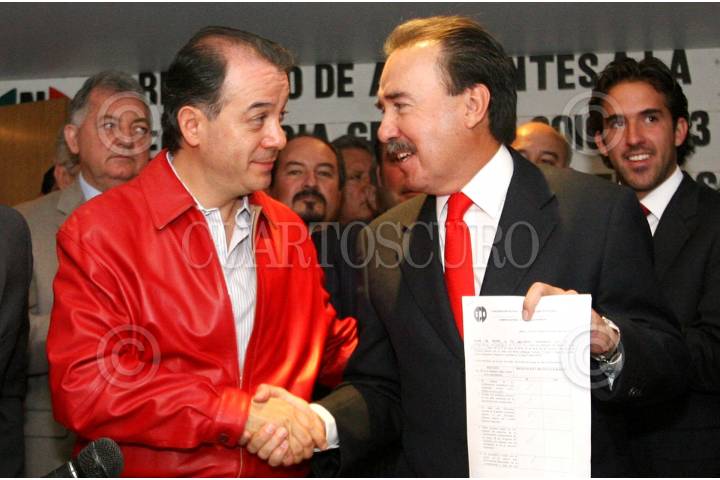 MÉXICO, D.F., 08MAYO2010.- Raúl Cervantes, recibio a Emilio Gamboa Patron en la sede de la Confederación Nacional de Organizaciones Populares (CNOP) para registrarse como aspirante a la secretaria general del sector popular CNOP del PRI. FOTO: CUARTOSCURO.COM