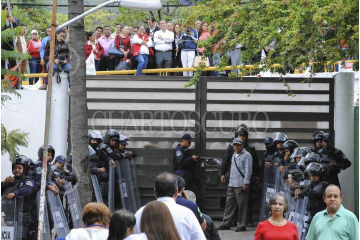 CHILPANCINGO, GUERRERO, 14JUNIO2015.- El gobernador electo de Guerrero el priista Héctor Antonio Astudillo Flores, recibió su constancia de mayoría de manos de la presidenta del Instituto Electoral y de Participación Ciudadana (IEPC) Marisela Reyes Reyes. Cabe mencionar que durante la entrega de la constancia estuvieron anti-motines resguardando las instalaciones y el candidato salió y agradeció y saludo a los ciudadanos que acudieron a refrendar el apoyo; en su proyecto. FOTOS: JOSÉ I. HERNÁNDZ /CUARTOSCURO.COM