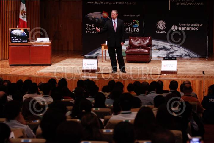 MÉXICO D.F., 29SEPTIEMBRE2009.- Al Gore, ex-candidato a la presidencia de Estados Unidos y autor del documental "An Inconvenient Truth Global Warming", ofreció la conferencia The Climate Project, esto en el auditorio de la institución financiera Banamex, ubicado en el Centro Histórico. FOTO: MOISÉS PABLO/CUARTOSCURO.COM