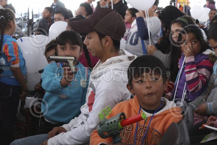 MEXICO, D.F., 16NOVIEMBRE2013.- Niños del Distrito Federal acudieron al evento organizado por el Non Violence Project para cambiar juguetes bélicos por balones de fútbol, llevado a cabo en el zócalo capitalino. FOTO: DAVID POLO /CUARTOSCURO.COM