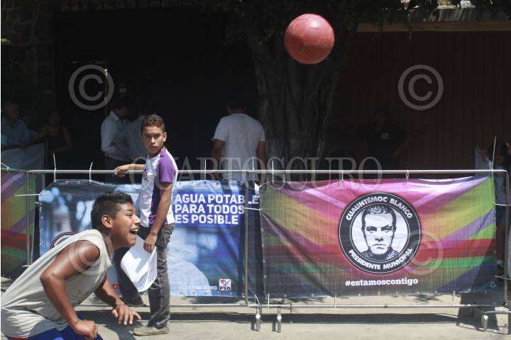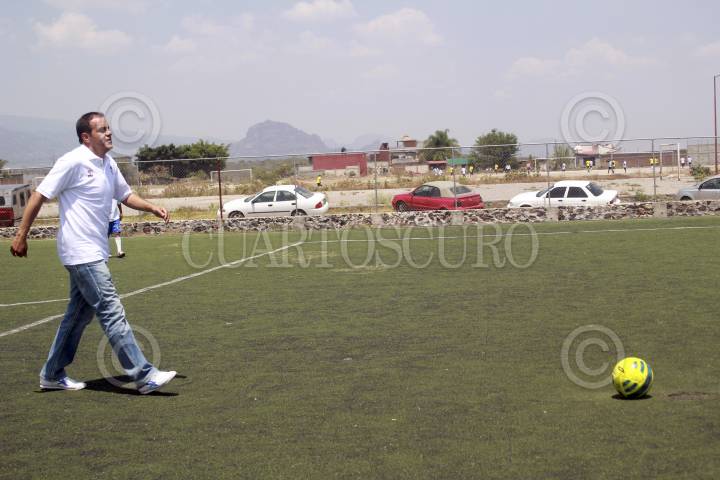 CUERNAVACA, MORELOS, 26ABRIL015.- Cuauhtémoc Blanco, candidato del PSD para la presidencia municipal de Cuernavaca, visitó la colonia Universo, donde llevó a cabo el programa Temoc Pipas y además convivió en las canchas de la colonia con jugadores y vecinos. FOTO: PATRICIA MORALES /CUARTOSCURO.COM