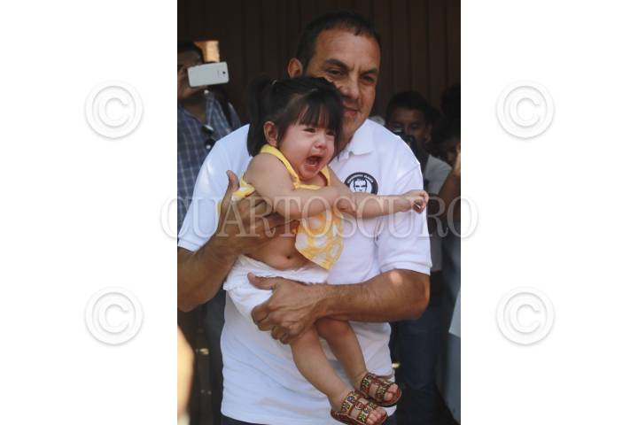 CUERNAVACA, MORELOS, 23ABRIL2015.- Cuauhtémoc Blanco, candidato del Partido Social Demócrata (PSD) a la presidencia municipal de Cuernavaca, presesntó el programa Temoc Pipas como parte su propuesta donde convivió con niños y familias de una colonia popular donde es común la falta de agua. FOTO: PATRICIA MORALES / CUARTOSCURO.COM