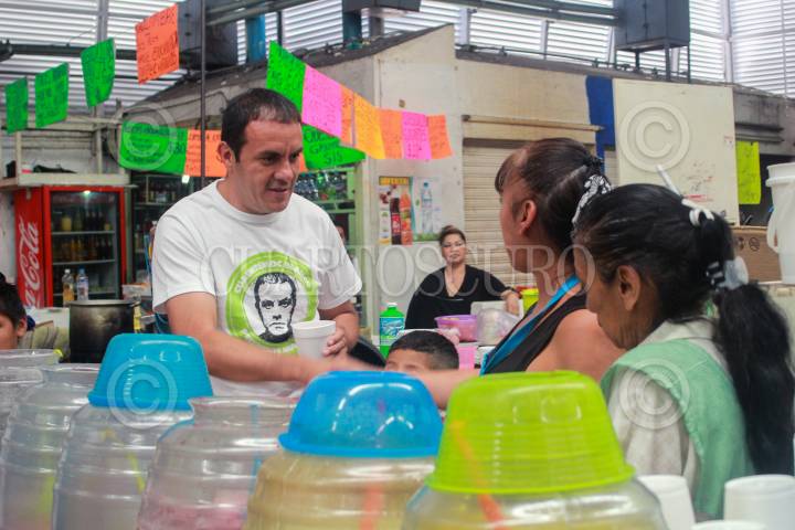 CUERNAVACA, MORELOS, 05MAYO2015.- El candidato a la presidencia municipal de Cuernavaca por el Partido Social Demócrata (PSD), Cuauhtémoc Blanco, visitó los locales de la Plaza Lido, saludó a los comerciantes, se tomó fotos recorrió pasillos antojitos donde le ofrecieron tacos y aguas frescas. FOTO: PATRICIA MORALES / CUARTOSCURO.COM