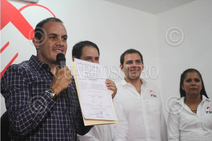 CUERNAVACA, MORELOS, 24JUNIO2015.- El ex futbolista Cuauhtémoc Blanco ofreció una rueda de prensa con militantes del Partido Social Demócrata en la que firmó la constancia de mayoría que le fue otorgada por el Instituto Morelense de Procesos Electorales y Participación Ciudadana (Impepac), tras concluir con el cómputo de las casillas de la elección del 7 de junio, en la que Cuahtémoc logró una diferencia de 8,258 votos con respecto de su más cercana competidora, Maricela Velázquez, del PRI. FOTO: PATRICIA MORALES /CUARTOSCURO.COM