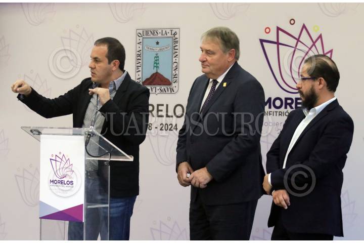 CUERNAVACA, MORELOS, 04DICIEMBRE2018.- Conferencia de prensa para presentar a Hugo Eric Flores Cervantes como delegado en el estado del gobierno federal. El ex presidente del Partido Encuentro Social señalo que habrá una coordinación con el gobernador Cuauhtémoc Blanco y el jefe de la Oficina de la Gobernatura José Manuel Sanz, presentes en la conferencia. FOTO: MARGARITO PÉREZ RETANA /CUARTOSCURO.COM