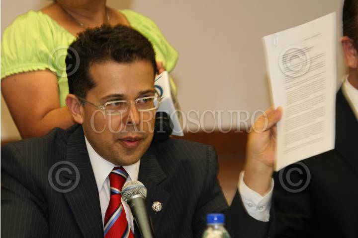 MÉXICO D.F. 13MAYO2008.-Xavier López Adame diputado del PVE y presidente de la comisión investigadora de los Contratos de PEMEX Refinación de 1997 a la Fecha, leyó el informe final luego de dos meses de trabajo y reiteró que no hubo tráfico de influencias ni violaciones a la ley en los contratos firmados entre PEMEX Refinación y Transportes Especializados Ivancar.FOTO: GUILLERMO PEREA/CUARTOSCURO.COM