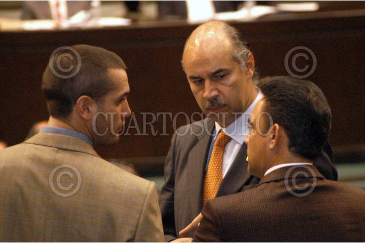 MÉXICO D.F. 07SEPTIEMBRE2006.- Los diputados, José Murat, Emilio Gamboa Patron, coordinador de la bancada del PRI y Jorge Emilio González del PVE, durante la sesión ordinaria en la Cámara de Diputados. FOTO: GUILLERMO PEREA/CUARTOSCURO.COM