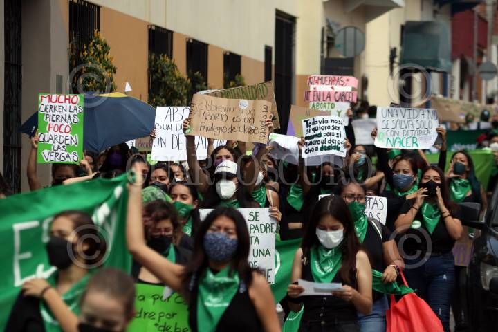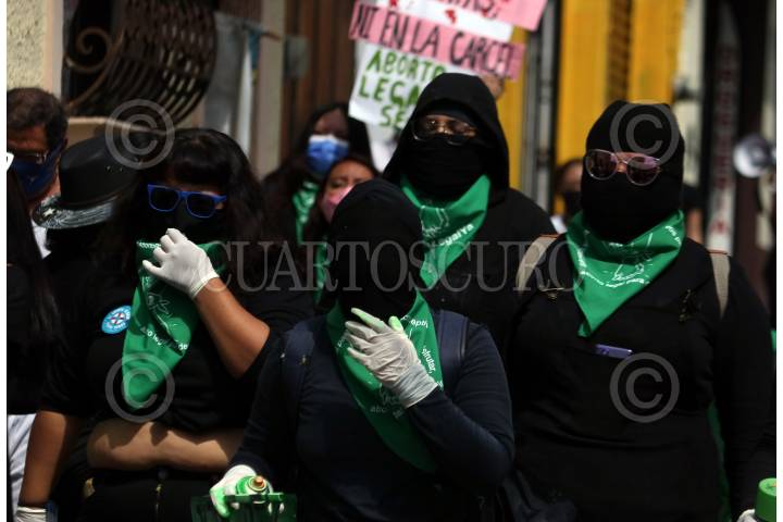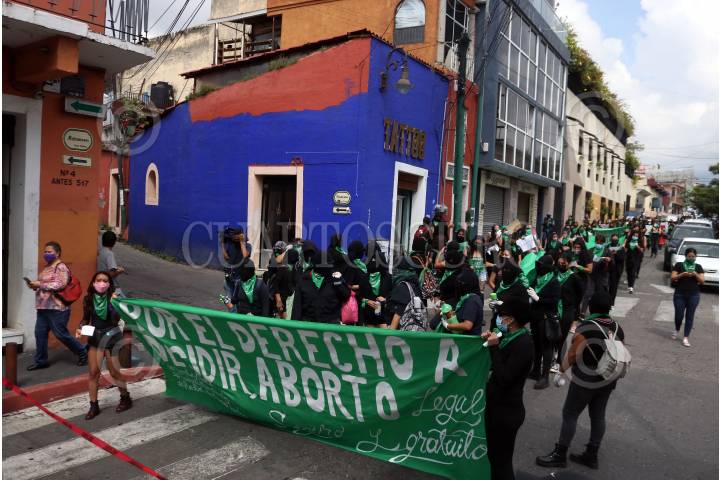 Feministas morelenses marchan en el Día de Acción Global por un aborto legar y seguro.