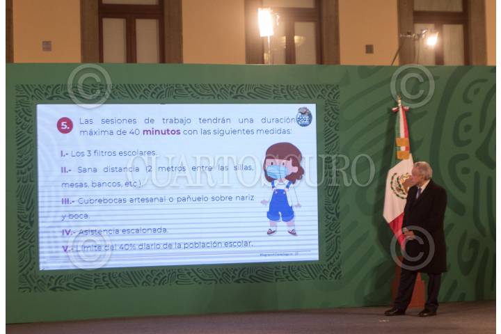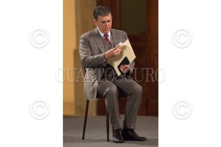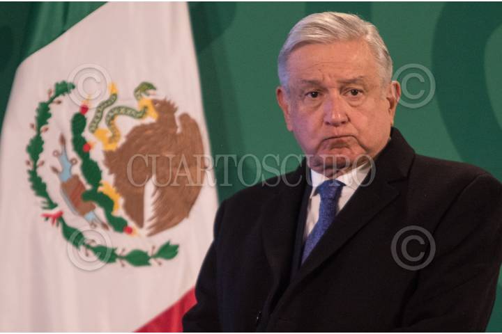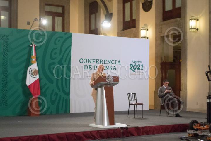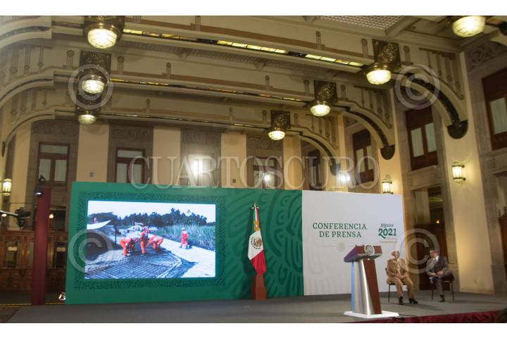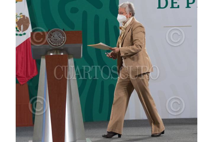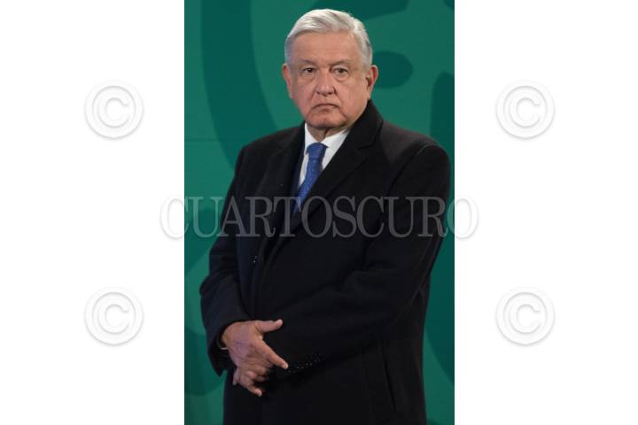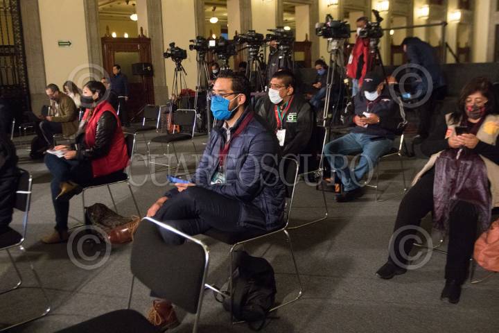 El Presidente Andrés Manuel López Obrador, en la conferencia de todas las mañanas, en salón Tesorería de Palacio Nacional.