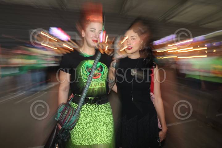 CIUDAD DE MÉXICO, 10AGOSTO2024. Chicas vestidas al estilo Pin-up durante su participación en el Wild O’Fest 2024 presentando su V edición. El festival de surf-garage que presenta no solo a diferentes bandas sino también espectáculos de lucha libre, teniendo como sede el Pabellón Oeste del Palacio de los Deportes.  FOTO: EDGAR NEGRETE LIRA/CUARTOSCURO.COM