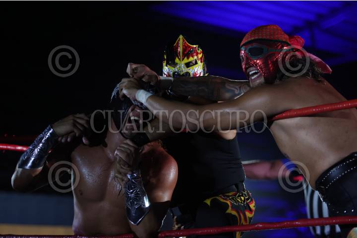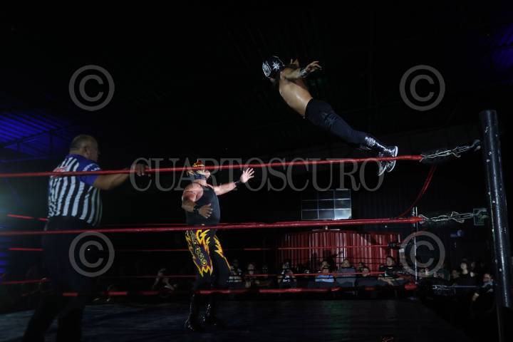 CIUDAD DE MÉXICO, 10AGOSTO2024. Los encuentros de lucha libre fueron uno de los atractivos durante el Wild O’Fest 2024 presentando su V edición en el Pabellón Oeste del Palacio de los Deportes.  FOTO: EDGAR NEGRETE LIRA/CUARTOSCURO.COM