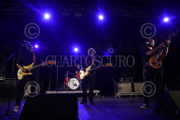 CIUDAD DE MÉXICO, 10AGOSTO2024. El grupo español, Wau y los Arrrghs!!! durante su participación en el Wild O’Fest 2024 presentando su V edición. El festival de surf-garage que presenta no solo a diferentes bandas sino también espectáculos de lucha libre, teniendo como sede el Pabellón Oeste del Palacio de los Deportes.  FOTO: EDGAR NEGRETE LIRA/CUARTOSCURO.COM