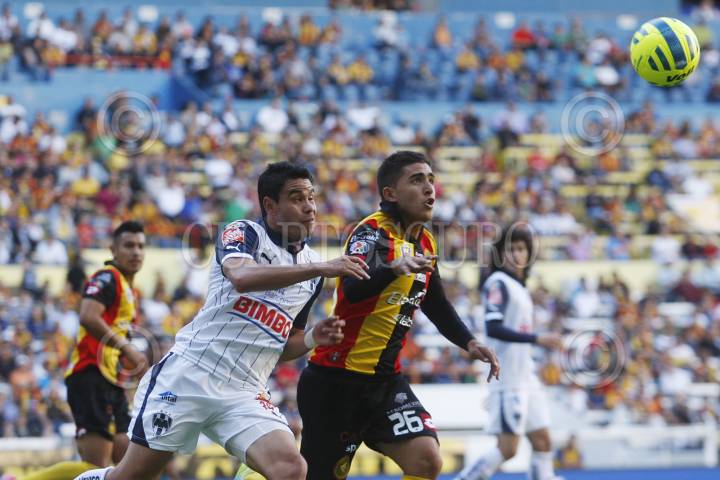 GUADALAJARA, JALISCO, 11ENERO2015.- En la imagen Pablo Barrera y Jairo González, disputan el balón durante el juego entre Leones Negros de la Universidad de Guadalajara y el equipo de Monterrey, en partido correspondiente a la Jornada 1 del Torneo Clausura 2015 de la Liga MX donde los Leones Negros vencieron un gol a cero a los rayados del Monterrey. FOTO: FERNANDO CARRANZA GARCIA / CUARTOSCURO.COM